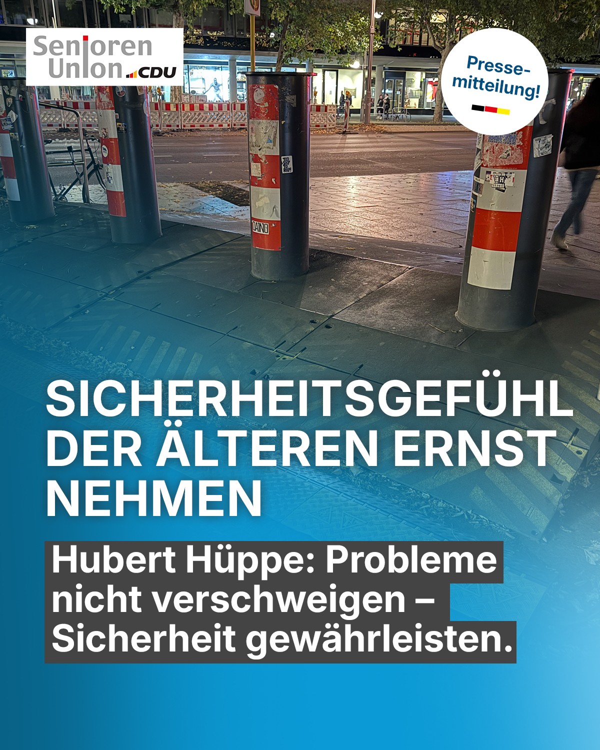 „Viele ältere Menschen erleben täglich, dass ihr Sicherheitsgefühl abnimmt. Wer nach Einbruch der Dunkelheit unterwegs ist, meidet nicht selten bestimmte Orte – aus berechtigter Sorge um die eigene Sicherheit. Der Kanzler benennt damit eine Realität, die wir nicht länger ignorieren dürfen“, erklärte Lohmann und verweist aktuell auf die besonders auffälligen Veränderungen in den Stadtbildern, die sich in den massiven Sicherheitsvorkehrungen zu den beginnenden Martini- und Weihnachtsmärkten ausdrücken.